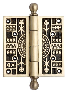 - 3 1/2 x 3 1/2 Ball Tipped Victorian Solid Brass Hinge (Antique Brass Finish)