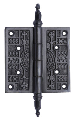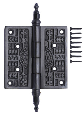 3 1/2 x 3 1/2 Steeple Tipped Victorian Solid Brass Hinge - measures 3 1/2 by 3 1/2 inches (not including the steeples). Mounts with four screws (included). Available in Polished Brass, Antique Brass and Oil Rubbed Bronze finishes. These hinges are sold in pairs.