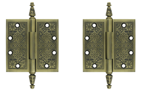 - 4 1/2 X 4 1/2 Inch Solid Brass Ornate Finial Style Hinge (Antique Brass Finish)