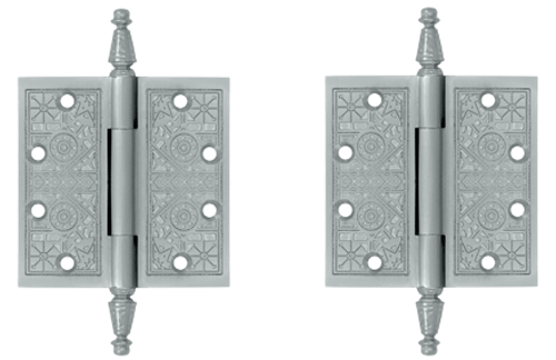 - 4 1/2 X 4 1/2 Inch Solid Brass Ornate Finial Style Hinge (Brushed Chrome Finish)