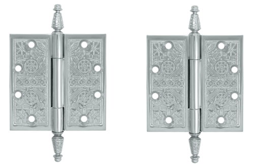 - 4 1/2 X 4 1/2 Inch Solid Brass Ornate Finial Style Hinge (Polished Chrome Finish)